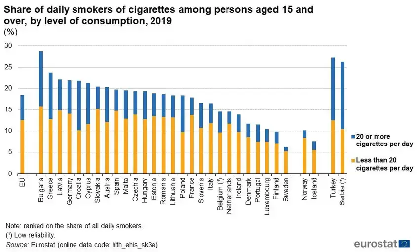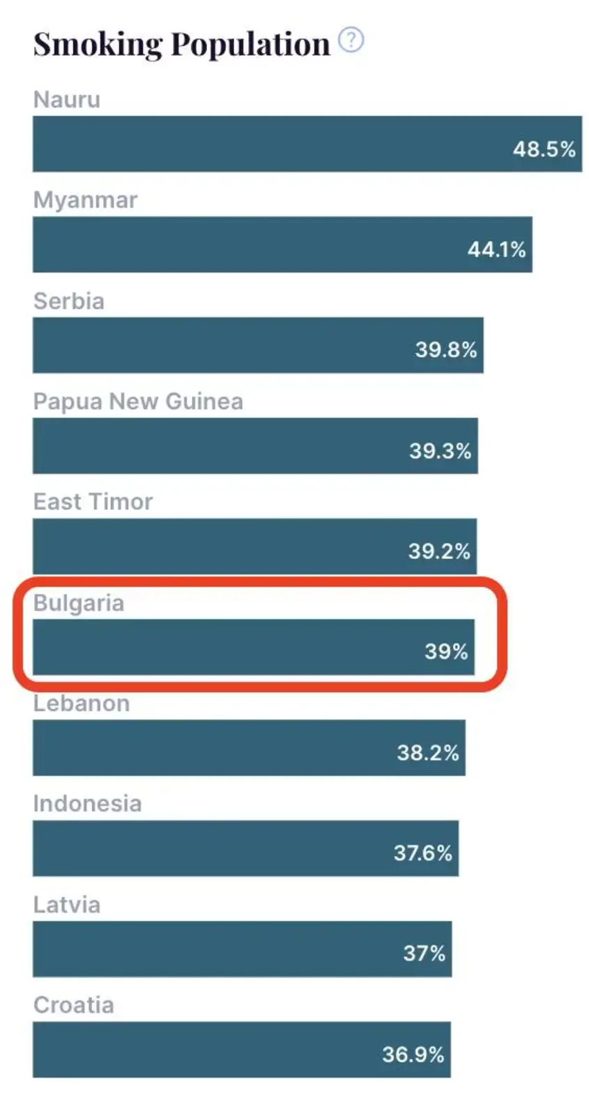 По българско проучване от 2020 г., всеки трети възрастен пуши всеки ден, но и всяко пето дете пуши. Всяко четвърто дете над 10 г. е пробвало цигари.