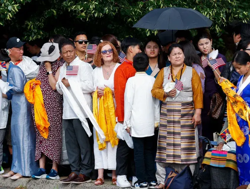 Част от тях носеха традиционни тибетски облекла и изпълняваха тибетски танци, за да изразят почитта си към Далай Лама.