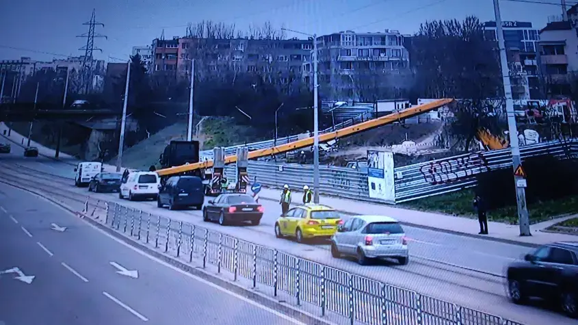 Кран падна при строежа на метрото на столичен булевард, няма пострадали