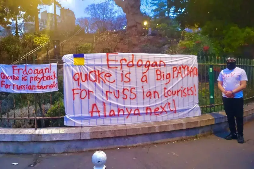Поне една от акциите се е състояла според плана. През март в администрацията на Кремъл подготвят отчет за мероприятие, състояло се на 5 март на площад "Сен Пиер" в Париж. В този ден петима души, представящи се за украинци, закачат антитурски банер с надпис "Ердоган, земетресението е разплата за руските туристи". Те се снимат, вдигайки ръка за нацистки поздрав, и викат "Stop Erdogan!". Целта на мероприятието е да се покаже колко неблагодарни са украинците, въпреки помощта, която Турция им оказва.