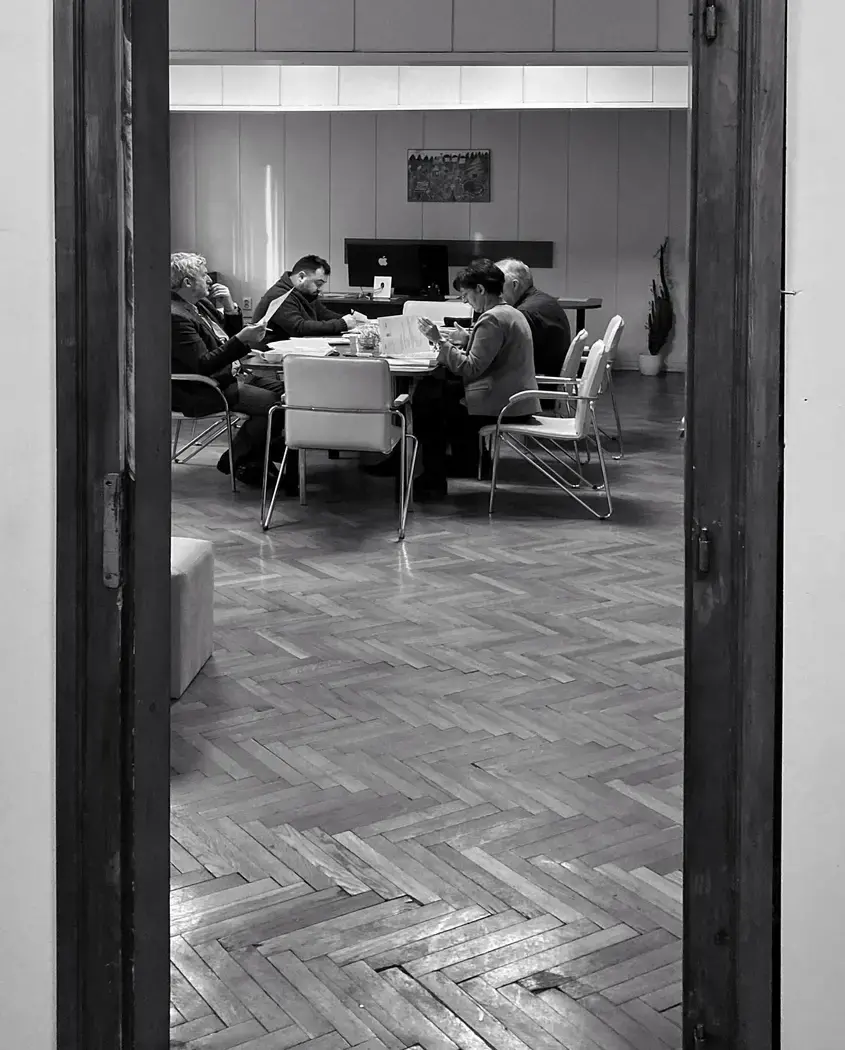"Добре дошли. Както и трябва да бъде, първата врата, която отваряме широко, е в кабинета на кмета Георги Кузмов. При нас тя не просто е отворена, а направо липсва. Това ще бъде и посоката ни на общуване, на разговори, дискусии и срещи," пише под снимка на кмета на "Оборище" в Instagram, на която се вижда входът към кабинета му.