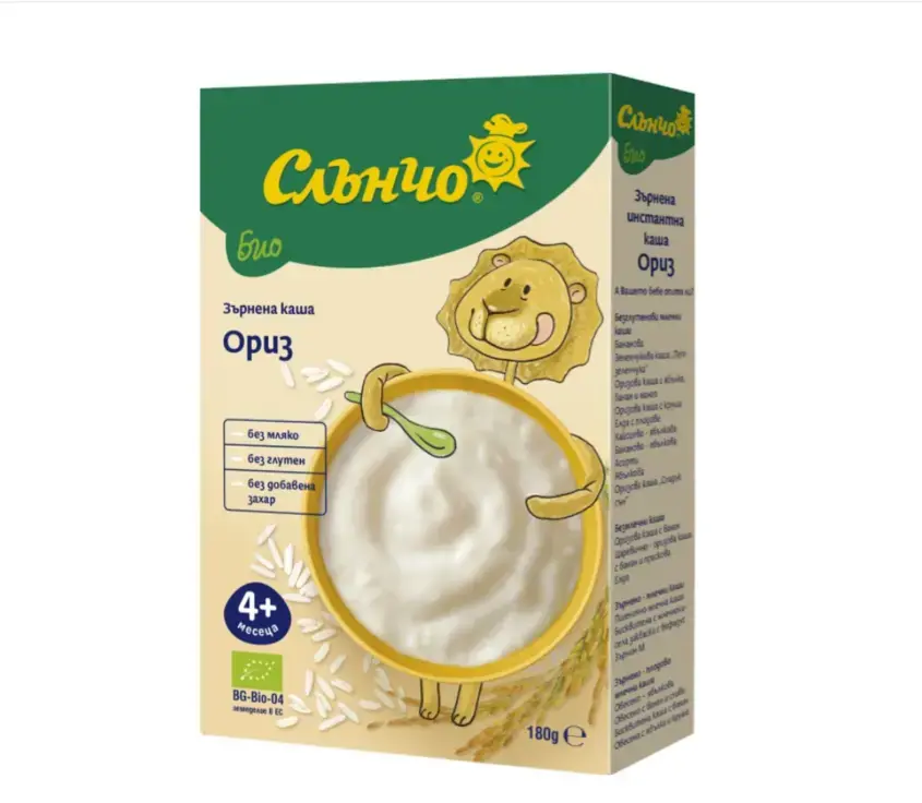 Зърнена каша за бебета над 4 месеца със завишено съдържание на неорганичен арсен е била засечена от Българската агенция по безопасност на храните (БАБХ). Съдържанието на арсен над допустимите норми в три партиди от Био зърнена каша "Ориз 4+" под марката "Слънчо".