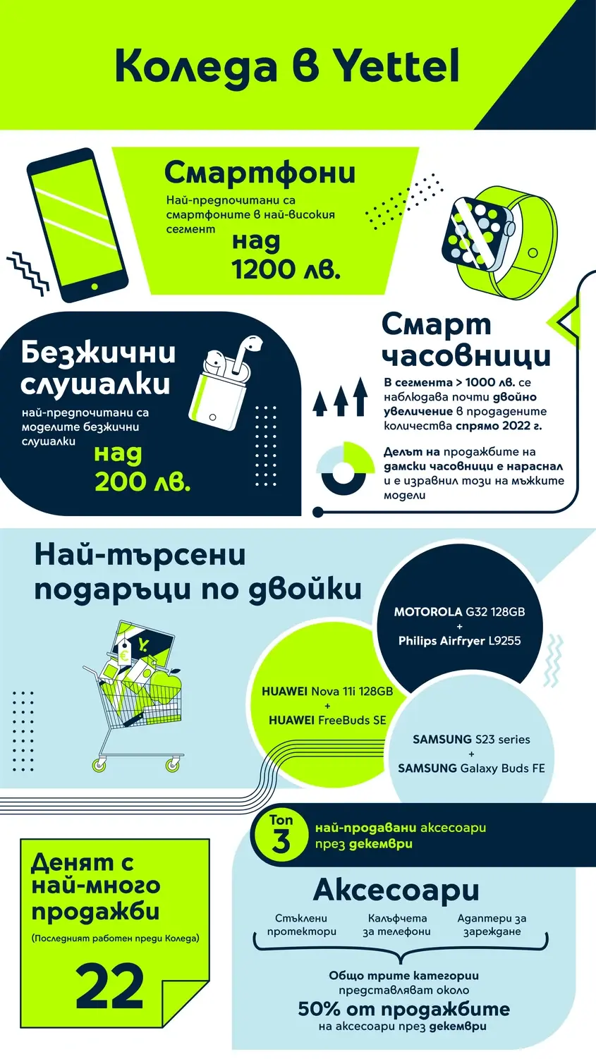 Сред бестселърите на декември са и ексклузивните бъндъл предложения от коледната кампания на Yettel, в които компанията комбинира топ смарт устройства и електроника за дома.