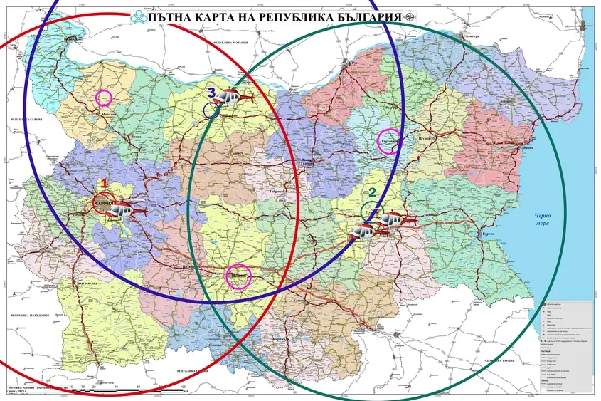 Досега България разполага с три медицински хеликоптера – един в София и два в Сливен. Останалите ще бъдат разпределени в Пловдив, село Габровница, община Монтана, и село Буховци, община Търговище.