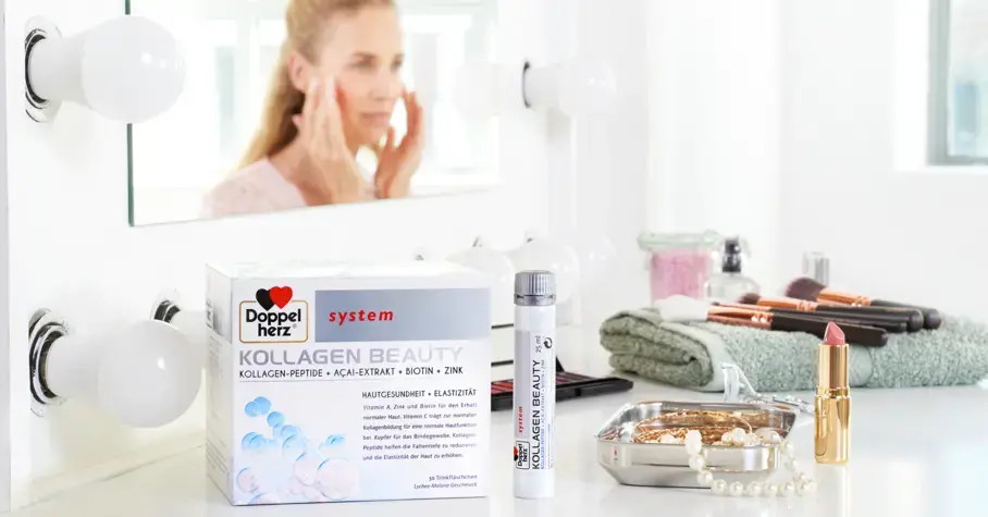 При кожата, както и във финансите, инвестициите трябва да са разпределени на няколко места. Колагенът е основата на гладкото и младо лице, но не е единственият фактор, от който зависи качественото “банкиране” на това вещество. Този принцип стои в основата на Doppelherz® system Колаген Beauty, при чието разработване са взети предвид всички процеси, които подпомагат запазването на младежката свежест на кожата.