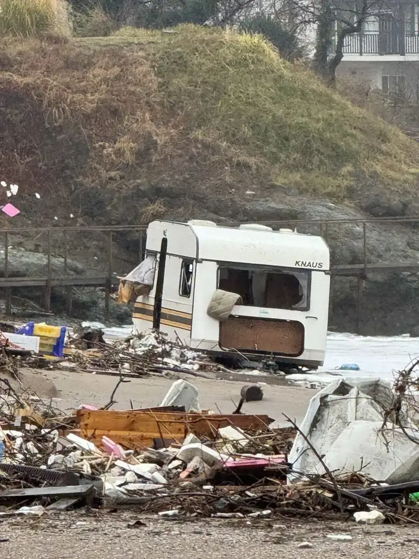 Кадри на потребители в социалните мрежи показват наводнени каравани и изпочупени клони на къмпинг "Арапя". Потребители в социалните мрежи, коментират, че се повтарят събитята отпреди две години.