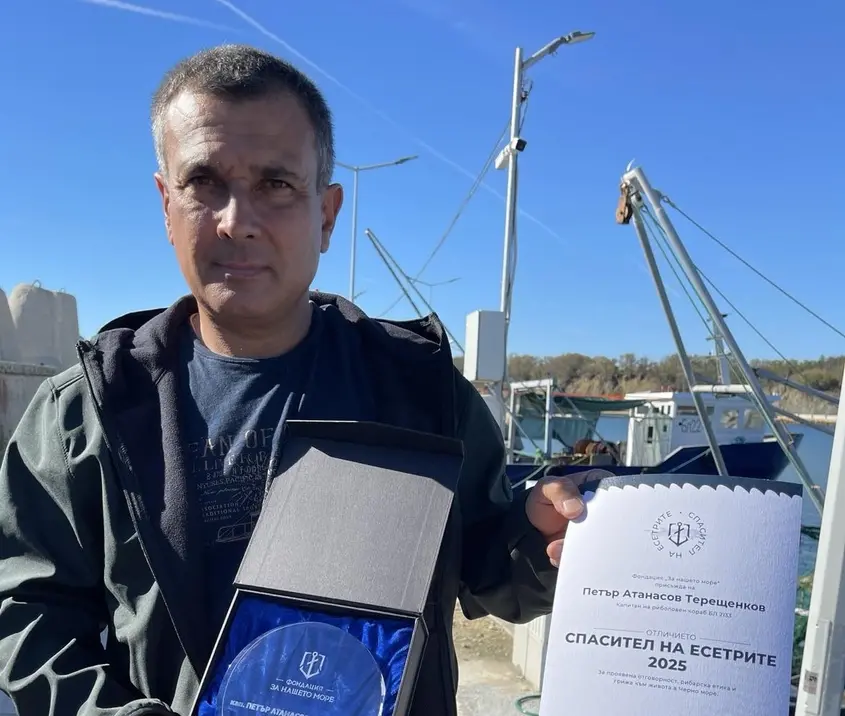 Постъпката му му носи признанието „Спасител на есетрите 2025“ – награда, която отличава рибарите по Черноморието, избрали да опазват един от най-застрашените видове на планетата.