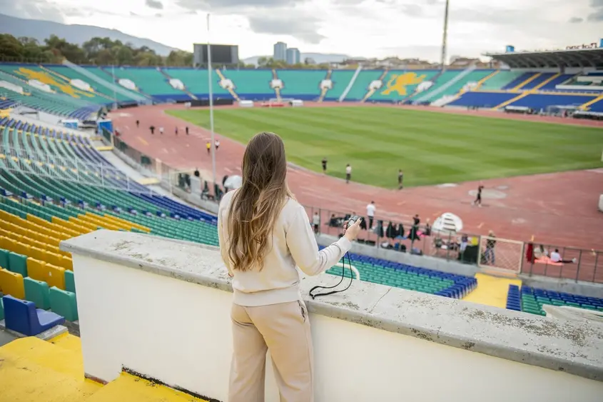 Разговаряме с Валя на едно от местата, на които може да бъде видяна всеки ден - Националния стадион „Васил Левски“. Около нея са петгодишната ѝ дъщеря Никол и двегодишният ѝ син Стефан, които са по пистите още от бебета, защото и татко им, Веселин, също е треньор в клуба. На Националния стадион Валя и Веселин провеждат голяма част от тренировките на своите възпитаници в клуба на петкратната участничка на Олимпийски игри Ивет Лалова.