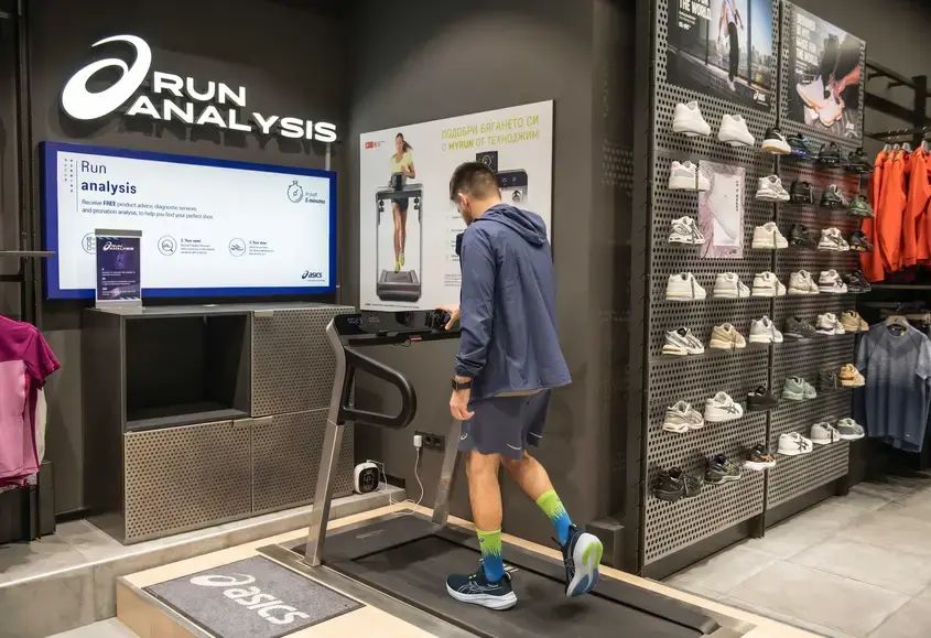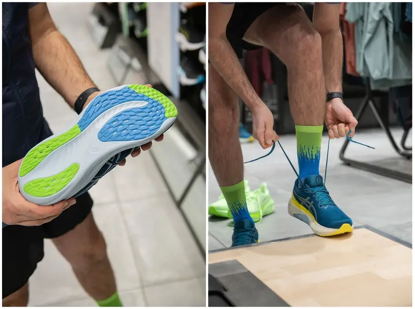 Аз бях доволен и от факта, че имах възможността да изпробвам пътеката за бягане в магазина на японския бранд в мол „Парадайс“, чрез която прекрасният екип там анализира сводът, походката и начина на разпределяне на тежестта при стъпването ви на земята с цел да ви насочи към най-подходящите обувки конкретно за вас. Ако имате съмнения колко важно е да тичате с точните обувки, то нека ви кажа, че проучванията сочат, че около четирима от петима бегачи рискуват контузии, ако бягат с неподходящи за стила им маратонки.