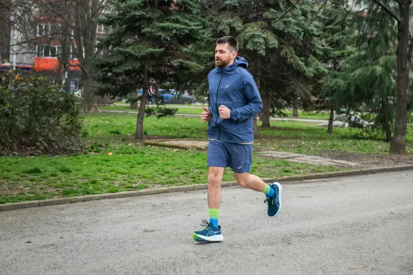 И като стана дума за цветове, няма как да пропусна нещо, с което ASICS са способни да спечелят и най-претенциозните. Всеки един нов модел от популярните маратонки на бранда носи със себе си и нова екипировка, която е създадена на база на маратонките. Това означава, че можете да сте сигурни, че това, което сте облекли, си пасва с обувките. Ако това има значение за вас, разбира се. В случая имате гащета, които са с клин в тях, както и тънко яке в цвета на обувките и фланелка с къс ръкав в пясъчен цвят, която пасва изцяло на останалата част от екипировката.