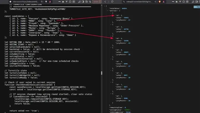 циркулиращите онлайн таблици и скрийншоти „категорично не отговарят на истината“, казват от БНТ по повод съмненията за разминавания между гласуването и обявения резултат от зрителския вот;