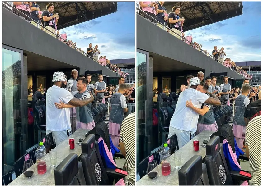 Преди мача ЛеБрон Джеймс прегърна Меси. Двамата играчи са считани от мнозина за най-великите за всички времена в своите спортове.