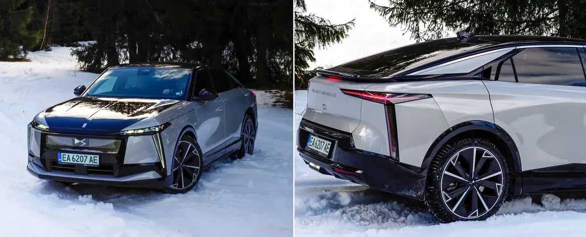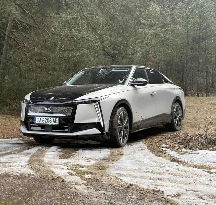 Платформата е споделена с Peugeot e-3008, но DS е преработил конструкцията: по-ниска предна преграда, по-дълго междуосие, задните седалки са изместени назад. Резултатът е по-ниска линия на покрива и повече простор за задните пътници - усещане, близо до бизнес седан, а не до SUV.