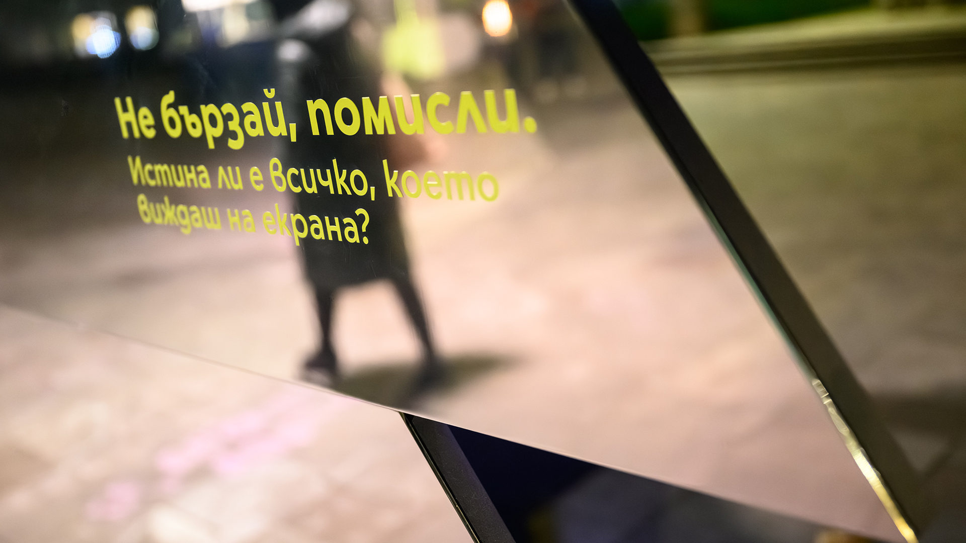 Инициативата се нарича „Огледай се“ и насочва вниманието към темата за дезинформацията в дигиталното пространство. Инсталацията е достъпна за посетители в градина „Кристал“ в София до 10 януари 2026 г.