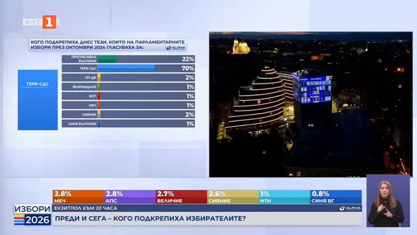 Това са БСП и "Има такъв народ" (коалиционни партньори на ГЕРБ през 2025-2026 г.) и "Възраждане", според данните на "Алфа рисърч".