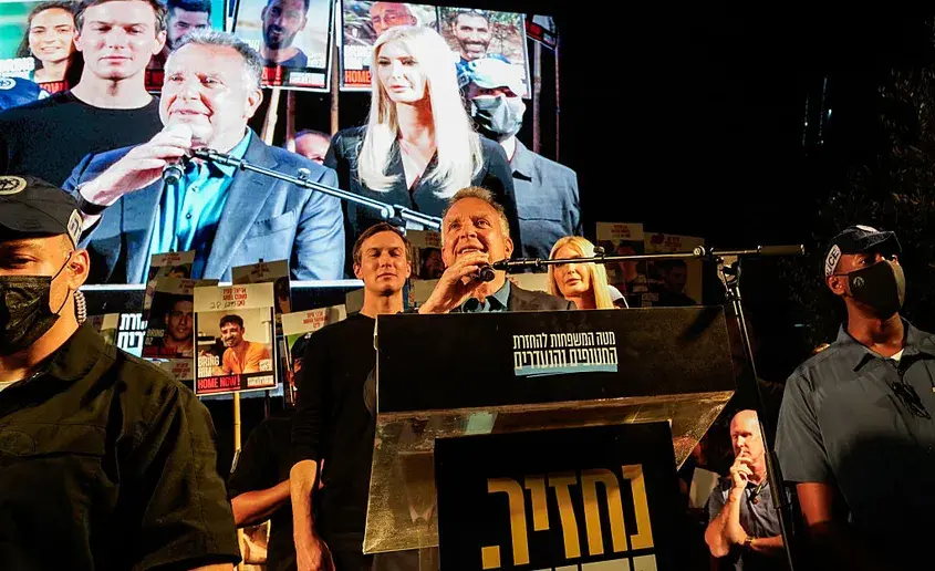 В събота вечер хиляди хора се събраха на „Площада на заложниците“ в Тел Авив, където специалният пратеник на САЩ за Близкия изток Стив Уиткоф, Иванка Тръмп и нейният съпруг Джаред Къшнър, приветстваха събралите се. Публиката аплодира Тръмп, но освирка израелския премиер Бенямин Нетаняху, което показа дълбокото разделение в израелското общество по отношение на войната.