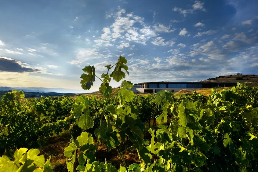 Архитектурно винарната е изградена като т.нар. невидима сграда – вкопана е в земята и на практика е част от природата.