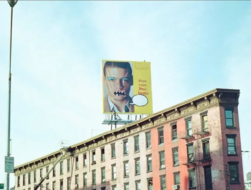 През септември 2000 г. в Ню Йорк полицията арестува мъж, който поврежда билборд на модния дизайнер Марк Джейкъбс на покрива на сграда в Манхатън. Това всъщност е Банкси. Полицията няма представа кого е задържала, защото артистът съвсем отскоро е започнал да използва псевдонима си.
