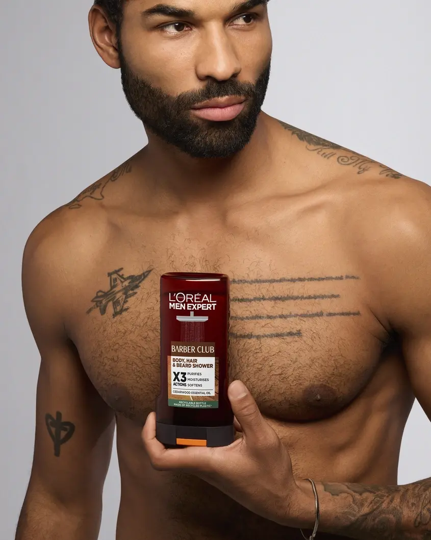 Такъв е душ гелът L’oreal Paris Men Expert Barber Club. Един флакон съдържа всичко необходимо за нежно почистване и хидратиране на косата, кожата и брадата. Душ гелът е с мъжествен, землист аромат на кедър и оставя усещане за мекота след къпане.