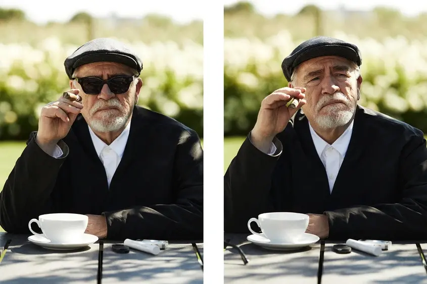 ,,Всеки, който е гледал сериала или поне бегло е запознат с героя на Логан Рой, вероятно ще намери премяната на Брайън Кокс в улично облекло за леко-стряскаща", написа KITH в Инстаграм.