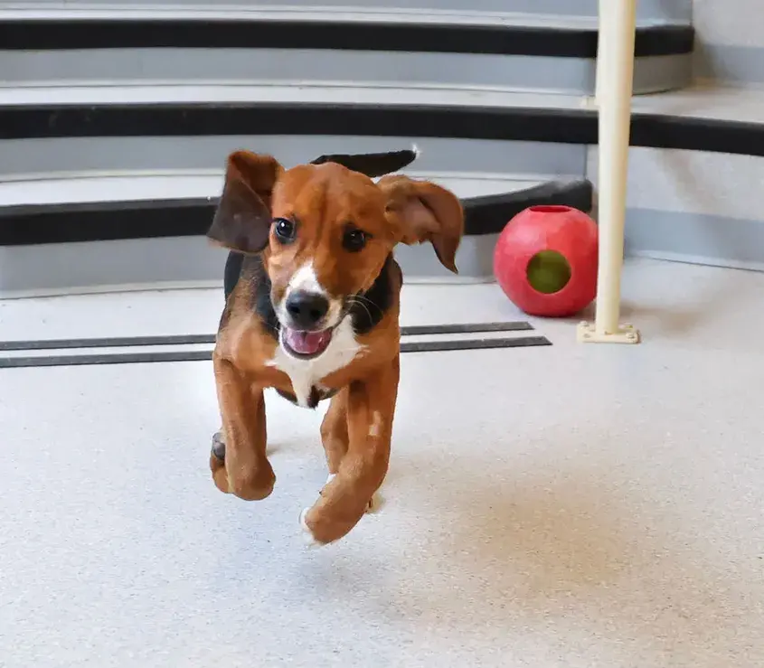 Осигурете му играчки, за да насърчите активното му поведение: зоомагазините днес изобилстват от играчки за вкуса на всяко бебе-куче: въжета, топки, плюшени играчки и т.н. Само имайте предвид, че е добре в началото да избирате играчки, които са два пъти по-големи от устата му, за да не погълне малки части от тях. Гледайте предметите от дома, които често падат жертви на кученцата (пантофи, найлони, кабели, зарядни и др.), да стоят на места, на които не могат да бъдат достигнати. От една страна, в името на добруването на самите пантофи и зарядни, от друга – защото могат да бъдат опасни за малкото животно.