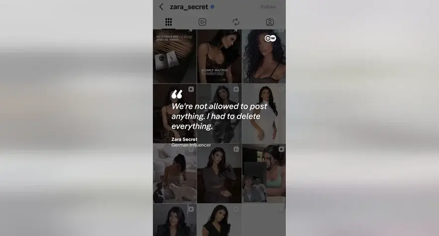 Германската инфлуенсърка Zara Secret казва във видео, че е била принудена да изтрие свои постове: „Не ни е позволено да публикуваме нищо. Трябваше да изтрия всичко.“