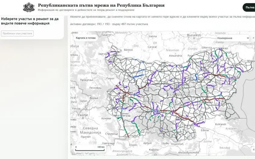 Нова интерактивна карта показва ремонтите по цялата пътна мрежа - с цени, срокове, изпълнители Снимка: © МРРБ