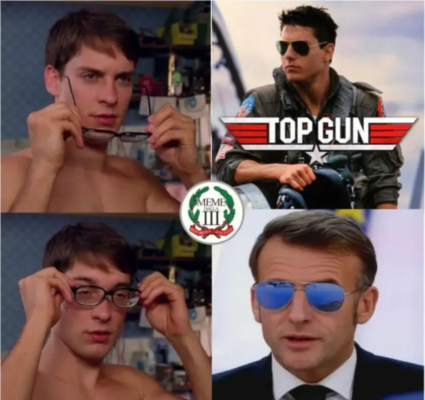 Социалните мрежи бързо превърнаха визията на Макрон в мемe феномен. Президентът беше „вмъкнат“ в плакати на филми като Top Gun, Cobra и Terminator, а дори Доналд Тръмп не пропусна да се пошегува, коментирайки саркастично: „Гледах го вчера с тези красиви слънчеви очила. Какво, по дяволите, стана?“