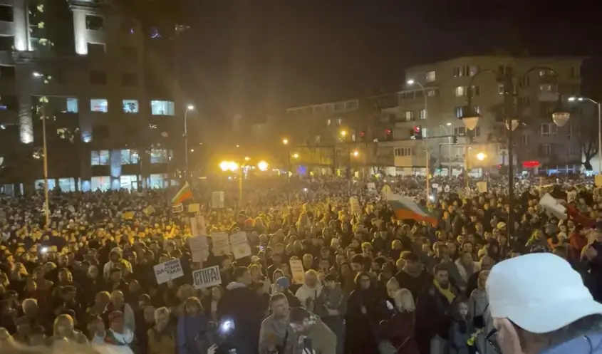 Хиляди варненци се събраха тази вечер на площада пред Общината в протест срещу Бюджет 2026. Граждани блокираха района около ул. „Преслав“, а полицията осигури засилено присъствие заради големия поток хора.