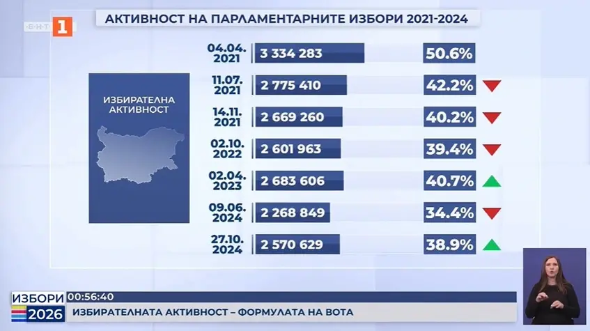 Според прогнозите до урните днес ще отидат между 3,2 и 3,3 млн. души. Над 3 млн. души гласуваха за последно на изборите през 2021 г.