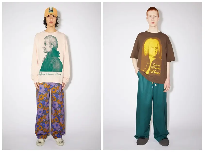Есенно-зимната колекция за 2022 г. "Лица" на Acne Studios почете класическата музика с дрехи с лицата на Хендел, Моцарт и Бах.