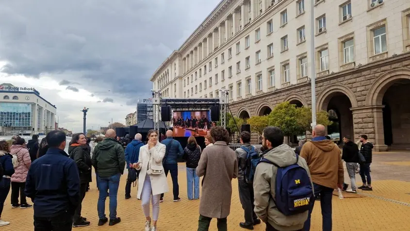 Междувременно ПП инсталира огромен LED екран в пространството при ларгото, на който се излъчва на живо заседанието на бюджетната комисия.