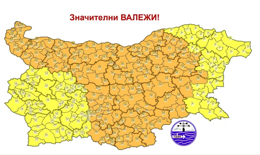 Предупрежденията са за интензивни валежи от дъжд, а в планинските райони и от сняг.