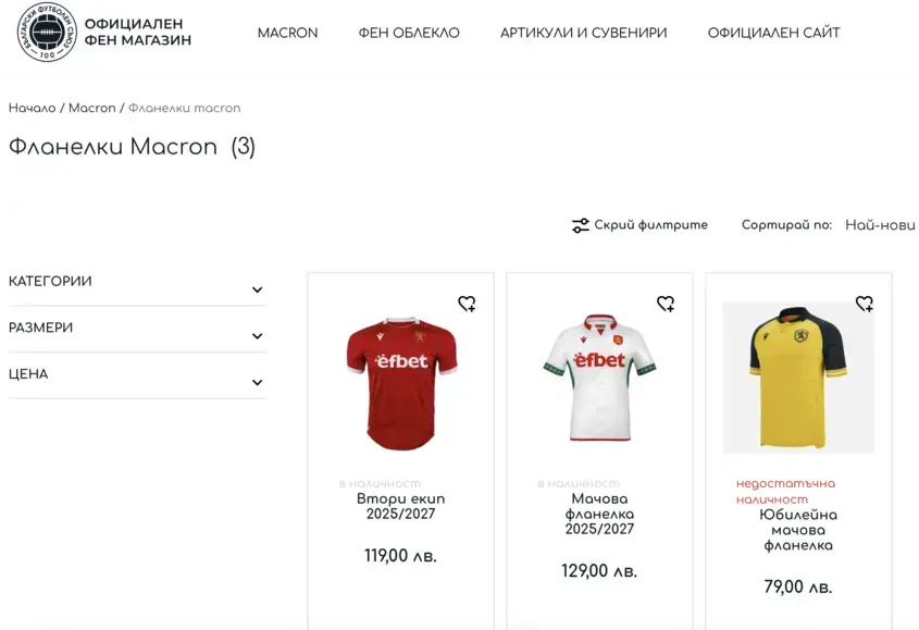 В официалния фен магазин има само “рекламните артикули”, както от БФС определят фланелките с хазартния бранд - нещо, което досега не се е случвало никога.