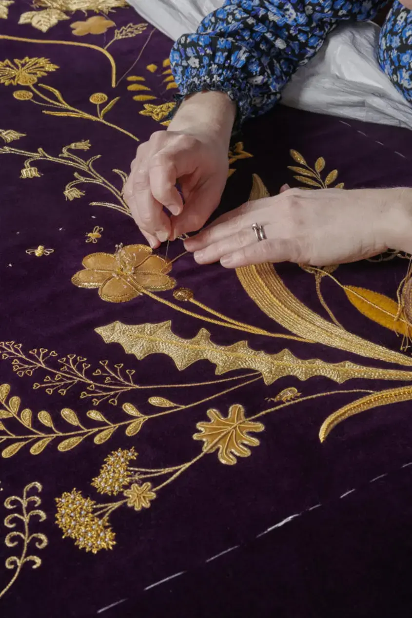 Но имменно под тази историческа дреха прозират личната история на Камила и собствения ѝ почерк. Роклята ѝ за коронацията с бродерия от слонова кост, сребро и злато е създадена от британския дизайнер Брус Олдфийлд, отговорен за едни от най-емблематичните тоалети на принцеса Даяна през 80-те години на миналия век. Неговата едноименна модна къща на Bruce Oldfield празнува 50-годишнина, а Камила също има дълга връзка с нея.