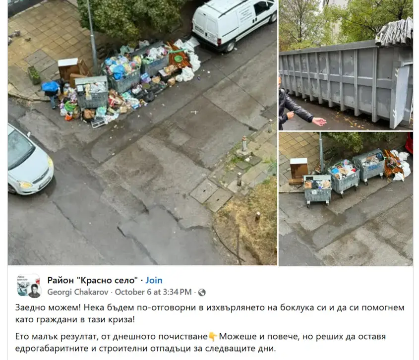 Във Facebook групата на район „Красно село“ Чакъров и негови съседи публикуват подробности за организацията на акцията и отчитат, че за втория ден доброволците, сред които и майки от квартала, са изхвърлили над 150 чувала отпадъци.