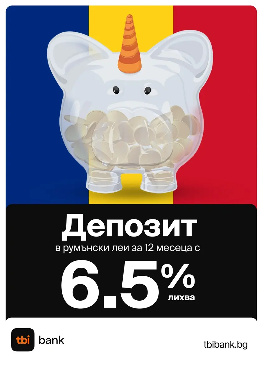 TBI bank пуска на българския пазар нов спестовен продукт – депозити в румънски леи с годишна лихва до 6.5%. Офертата е достъпна както за физически лица, така и за корпоративни клиенти. Те могат да изберат срочност между 1 и 12 месеца.