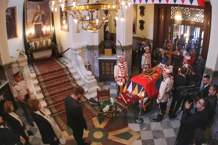 Тленните останки на цар Фердинанд бяха посрещнати в двореца Врана със специална процесия, водена от гвардейци.