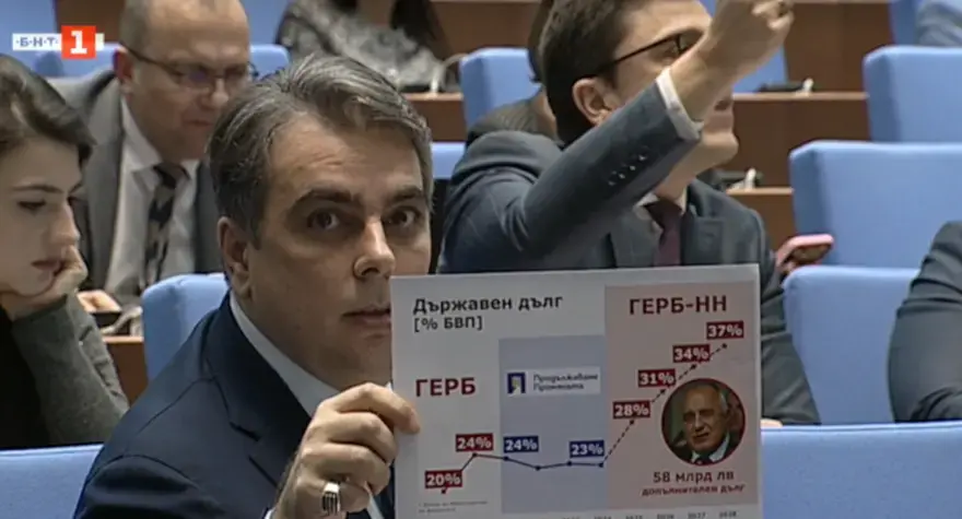 "Това правителство трябва да подаде оставка, защото краде българския народ", заяви Асен Василев и посочи серия числа от резвизирания проектобюджет, сред които повишаване на заплатите в комисията за борба с корупцията с 40% и вдигането на заплатите във Висшия съдебен съвет. Председателката на Народното събрание Рая Назарян се опита да прекъсне изказването на Василев за бюджета, с аргумента, че "се отклонява от темата на дебата", въпреки че вотът на недоверие, който се обсъжда е заради провала на правителството в икономическата политика.