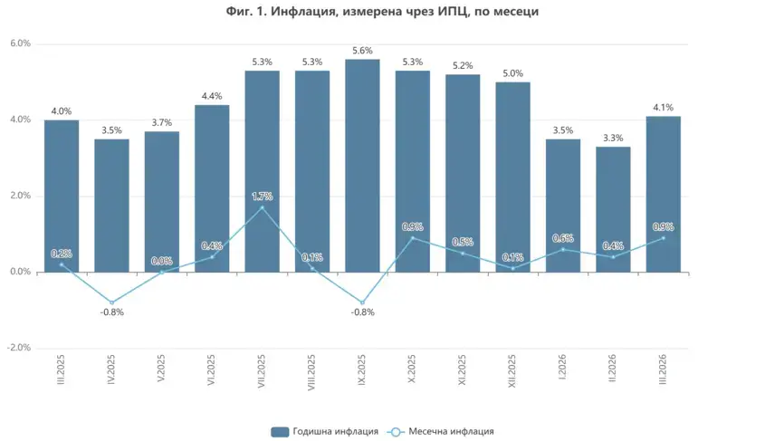 Войната в Близкия изток доведе до поскъпване на живота в България с 4,1% на годишна база през март. Месец по-дано инфлацията е била 3,3% , показват данните на Националния статистически институт.