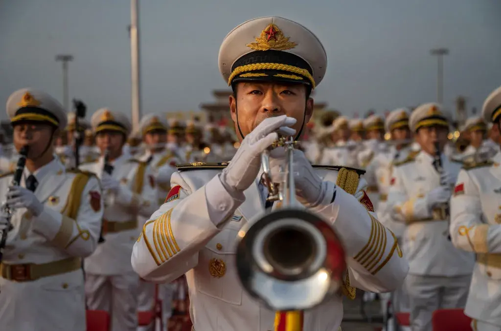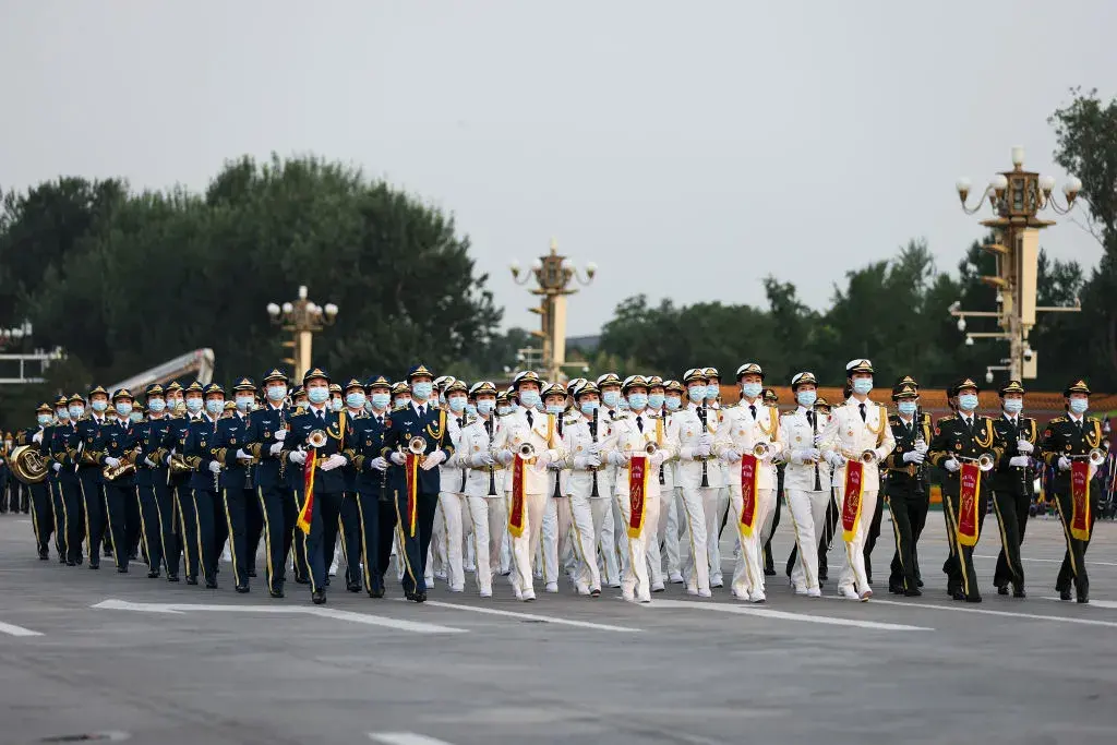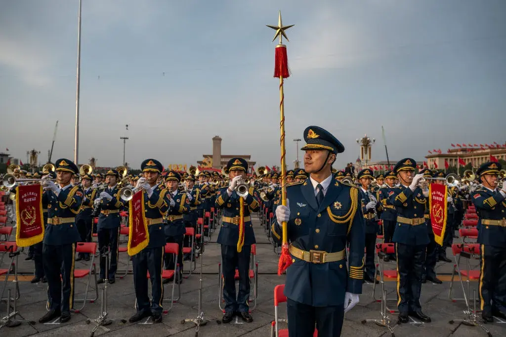 По трибуните местата си заеха президентът Си Дзинпин, членове на Политбюро и Кари Лам – премиерът на Хонконг, „автономният“ регион, репресиран от Комунистическата партия.
