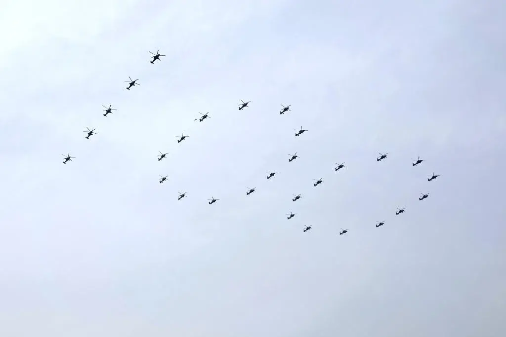 Тази година, за разлика от преди, няма да се проведе военен парад. Над Тиенанмън все пак излетяха десетки изтребители, които оформиха числото 100 в знак на празненствата за стотния юбилей. Официалните събития ще продължат в предстоящите седмици.