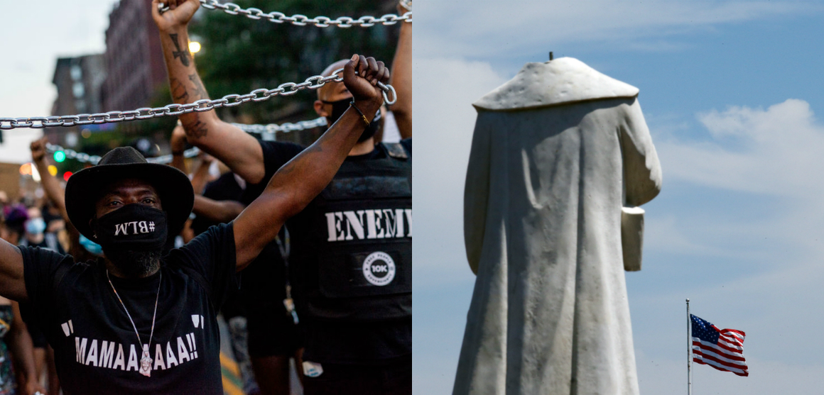 Масови протести, пожари, арести, насилие и призиви за прекратяване на бюджетното финансиране за полицията в САЩ - така изглеждаше лятото на 2020 г., когато движението Black Lives Matter избухна с невиждана сила след убийството на чернокожия арестант Джордж Флойд в Минеаполис. Вълната от протести срещу системния расизъм и "стария ред" не пожали и паметниците на исторически фигури. Свалени бяха статуи на президенти като Джордж Вашингтон, Томас Джеферсън, Юлисис Грант и др. Обезглавен беше монументът на Кристофор Колумб в Бостън. Дори в Лондон се наложи да се издигнат предпазни стени и скелета около прочутия паметник на Уинстън Чърчил, след като постаментът му беше надраскан с надпис "расист".