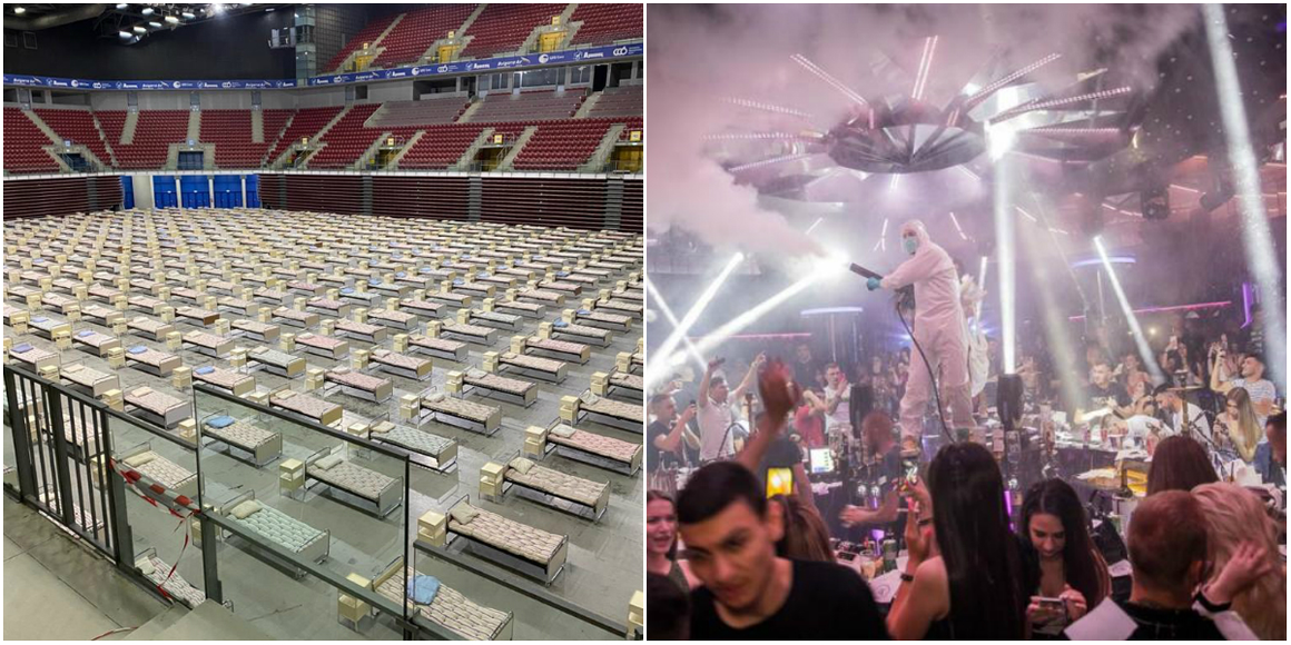 Докато лекарите, медицинските сестри, санитарите и лаборантите прекарваха цели денонощия на работните си места, няколко абсурдни сцени провокираха скандали - като партито в Благоевград с танцьор, облечен в бял предпазен костюм, и пърформанса в Слънчев бряг с ковчези, кръстове, монахини и шампанско...