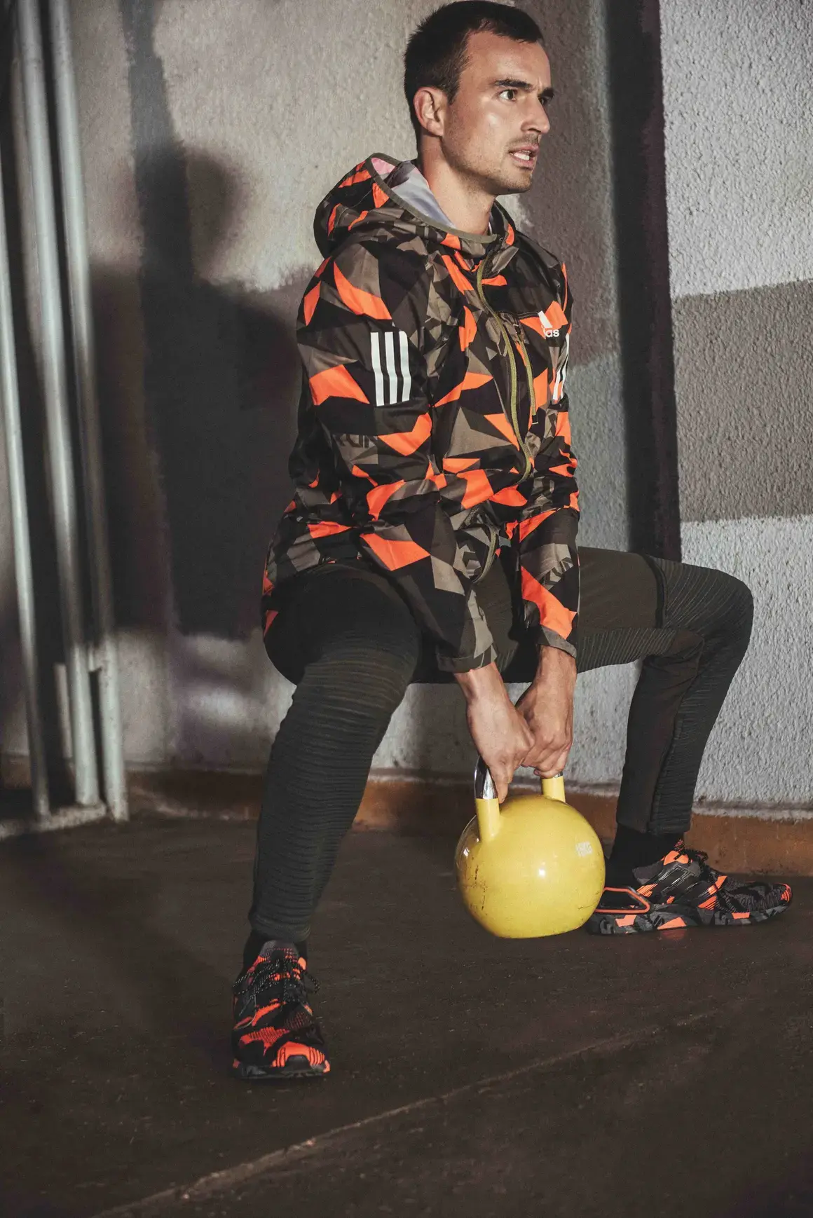 Мартин Гаджев от adidas Runners Sofia е със спортно горнище аdidas OWN THE RUN– то е с цип по цялата дължина и предпазва от студа, а свободната кройка позволява под него да носите няколко пласта дрехи в зависимост от времето.
