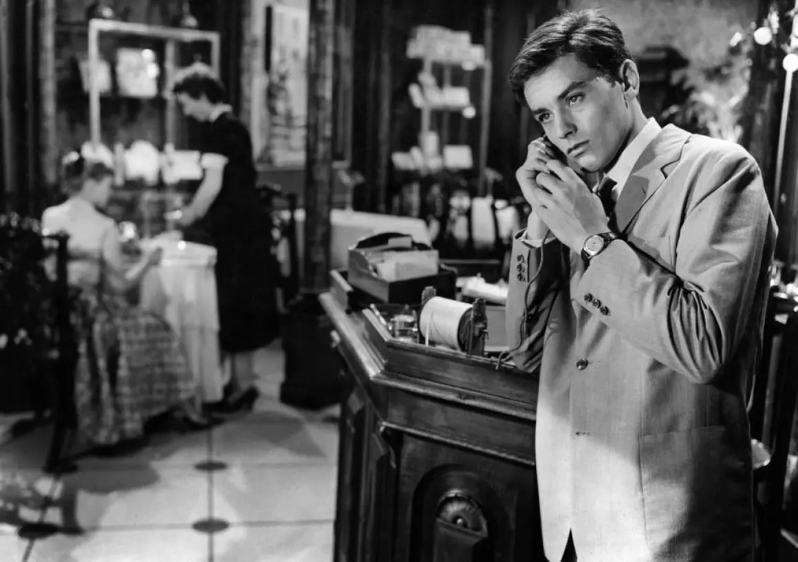 Делон влиза в света на киното, когато е на 22 години. Помага му познанството с актрисата Бриджит Обер, с която по това време е във връзка.