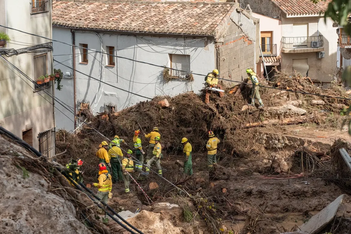 На снимката: пожарникари разчистват дърветата и калта от Летур край Албасете (Кастилия - Ла Манча).