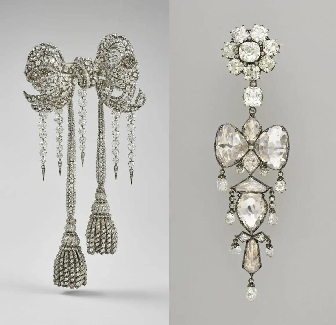 Двете брошки също са част от комплекта с бижута на императрица Евгения. Сега и те са безследно изчезнали от Лувъра.