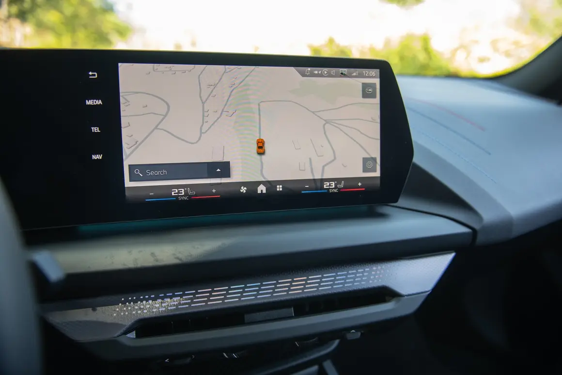 Curved Display-ят доминира таблото, материалите се усещат качествено въпреки липсата на кожа. Veganza материалът изглежда и се усеща достатъчно добре, така че да не ви липсва истинската кожа.