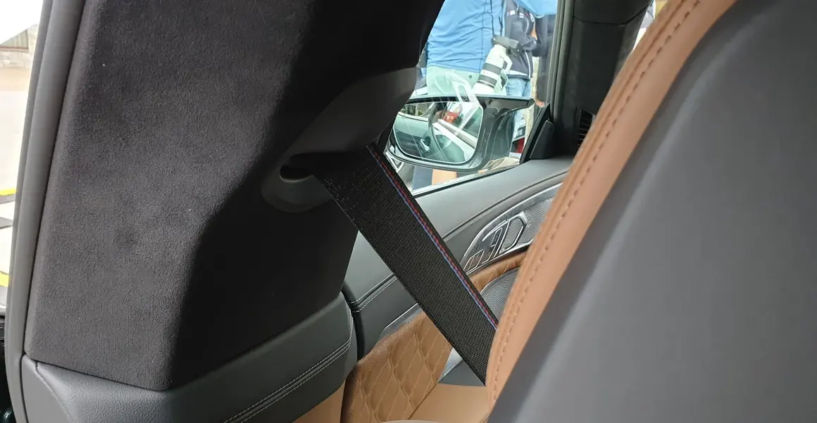 Интериорът е с велурен таван, коланите - с шевове с цветовете на М серията